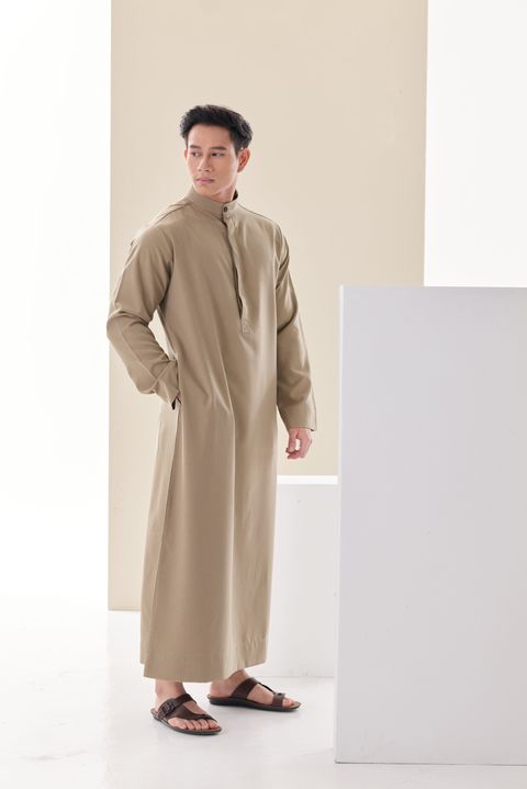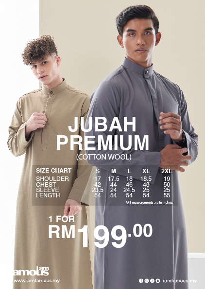 Our model is 176 cm tall and he is wearing Jubah Premium Size M