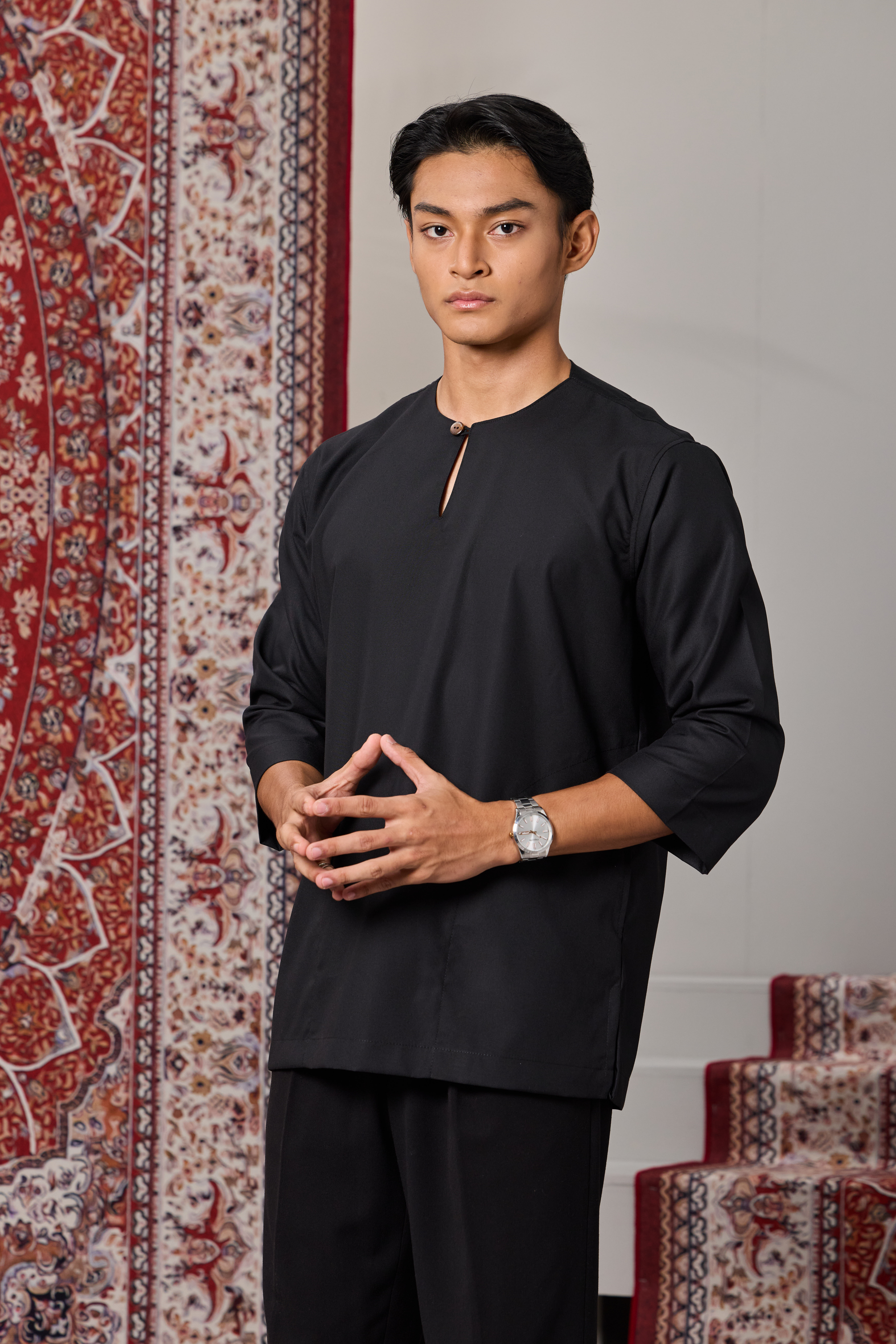 KURTA UZAYR 3/4 SLEEVES - BLACK